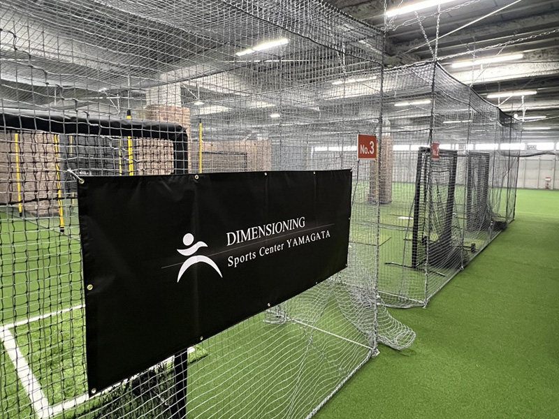 東北初出店となるDIMENSIONING Sports Center YAMAGATAは、2026年2月1日にOPENし、 室内スポーツ複合施設「Blue Sky山形」内に併設された野球専門トレーニング施設です。ここでは、競技者の能力向上を目的とした高度なトレーニング環境が提供しています。ピッチング・バッティングの両面でNPB/MLB球団でも採用されているHitTrax・Rapsodoを完備。